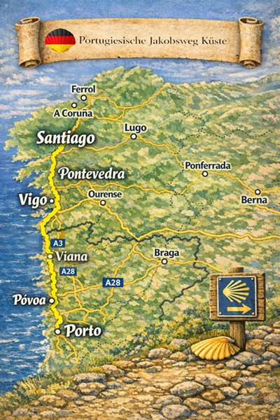 Der Portugiesische Weg innerhalb des Jakobswegs