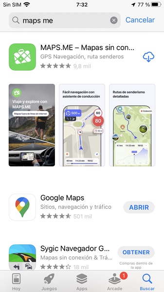 1.- Maps.me aus dem App Store installieren: