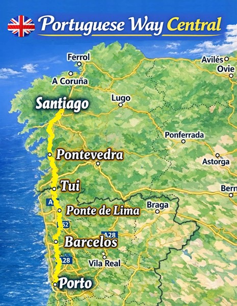 - Porto – Tui (Central Portuguese Way):