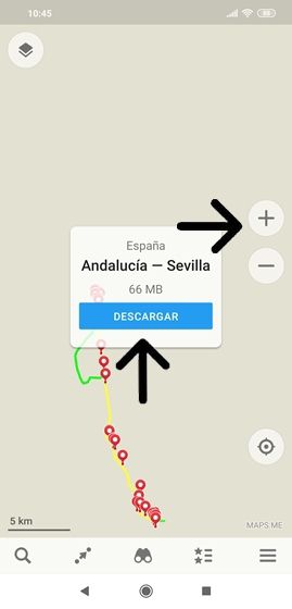 Las descargas de mapas apareceran al hacer zoom: